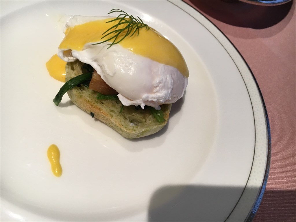 オーダー制のエッグベネディクト。フワフワのパンケーキもあり、かなり豪華な朝食になりました。